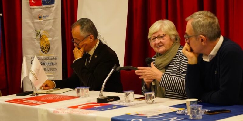Proje kapsamında düzenlenen “Sorumlu Üretim ve Tüketimde Yerel Yönetimlerin Rolü Politika Belgesi Hazırlık Çalıştayı”, yerel yönetimlerin iklim krizi karşısında tarımsal üretim ve tüketim süreçlerindeki sorumluluklarını ele almak ve Çeşme Yarımadası ölçeğinde ortak bir politika yaklaşımı geliştirmek amacıyla gerçekleştirildi.