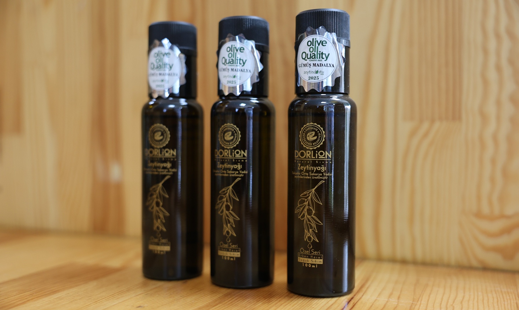 Yeni ambalaj tasarımlarıyla dikkat çeken ve yeni hasat Dorlion zeytinyağlarında; 100 ml ve 250 ml’lik şişelerde Zeytindostu Derneği’nden alınan ödüllerin etiketleri, 5 litrelik tenekelerde ise “2026 Eskişehir Yılı” logoları yer alıyor.