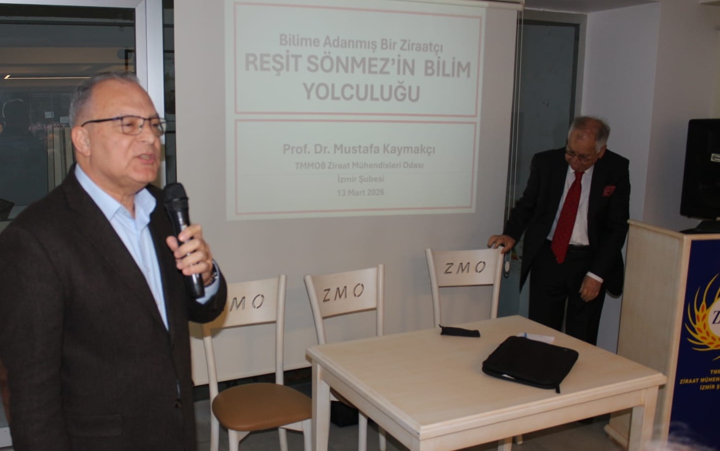 Anma töreni, ZMO İzmir Şubesi Başkan Dr. Hakan Çakıcı’nın açış konuşmasıyla başladı. Daha sonra hocanın manevi oğlu Prof. Dr. Mustafa Kaymakçı, “Bilime Adanmış Bir Ziraatçı: Reşit Sönmez’in Bilim Yolculuğu” adlı bir söyleşi yaptı. Prof. Dr. Kaymakçı, ana amaçlarının, toplumların ilerlemesinde görev almış bilimcilerine sahip çıkılması düşüncesinin yaygınlaşmasına katkıda bulunmak olduğunu söyledi.