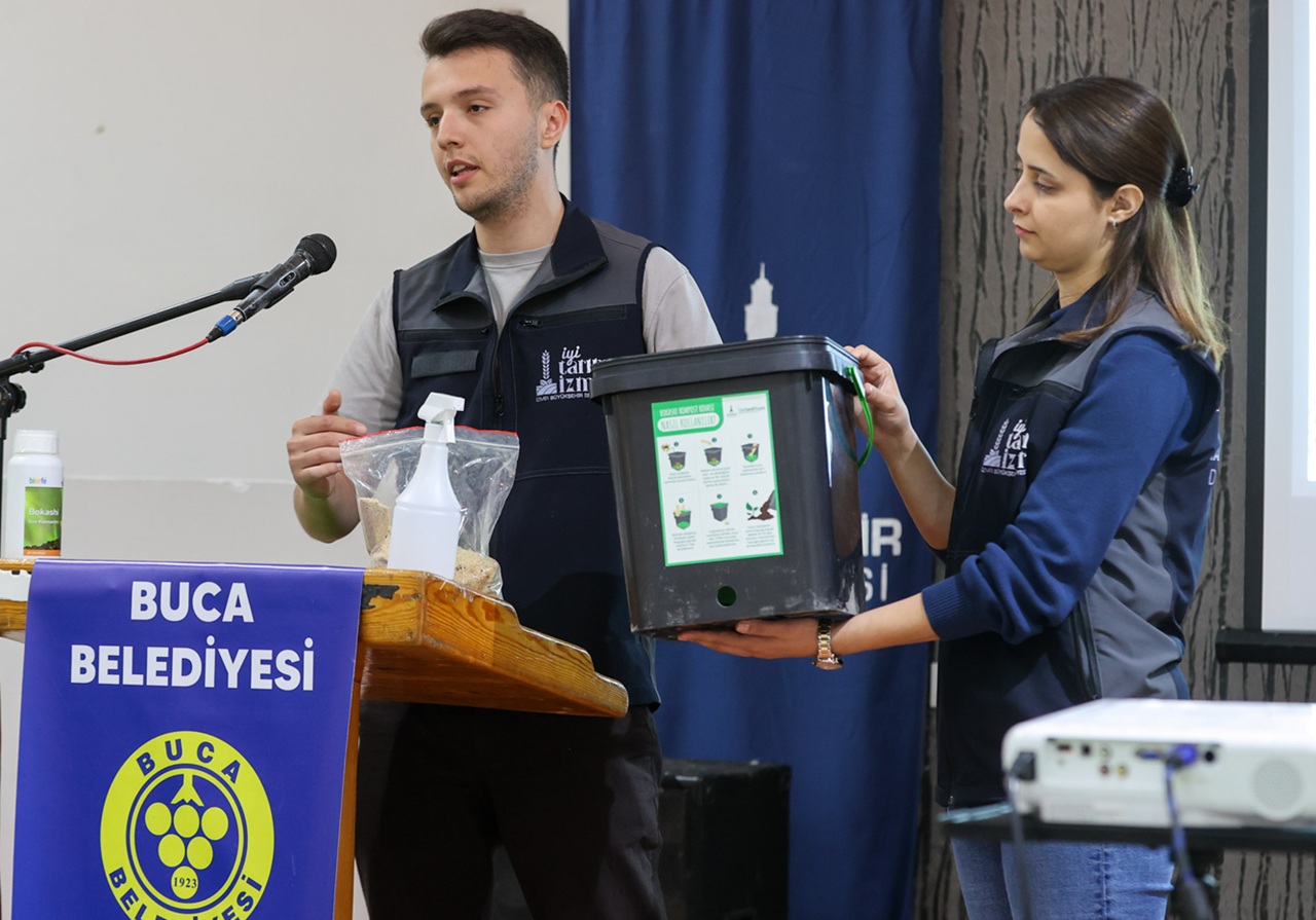 Sürdürülebilir çevre ve sıfır atık hedefiyle çalışmalarını sürdüren Buca Belediyesi, evsel mutfak atıklarını değerli gübreye dönüştüren Bokaşi kompostu eğitimine ev sahipliği yaptı. İzmir Büyükşehir Belediyesi ile ortaklaşa düzenlenen eğitim, Şirinyer Düğün Salonu’nda vatandaşların yoğun ilgisi ile gerçekleştirildi.Programın açılışında konuşan İzmir Büyükşehir Belediyesi Tarımsal Hizmetler Dairesi Başkanlığı Kompost Üretimi ve Geri Kazanım Şube Müdürü Çağdaş Erol, topraktaki organik madde oranının kritik seviyelerde olduğuna dikkat çekti. Erol, “Amacımız mutfaktan çıkan organik atıkların toprak düzenleyici maddeye dönüşmesini sağlamak. İstatistiklere göre topraklarımızdaki organik madde miktarı yüzde 1’in altında. Oysa biz bunun en az yüzde 3 olmasını bekliyoruz. Buca halkına duyarlılıkları, Belediye Başkanımız Görkem Duman’a da daveti için çok teşekkür ediyoruz” diye konuştu.Başvurular mobil uygulama üzerinden